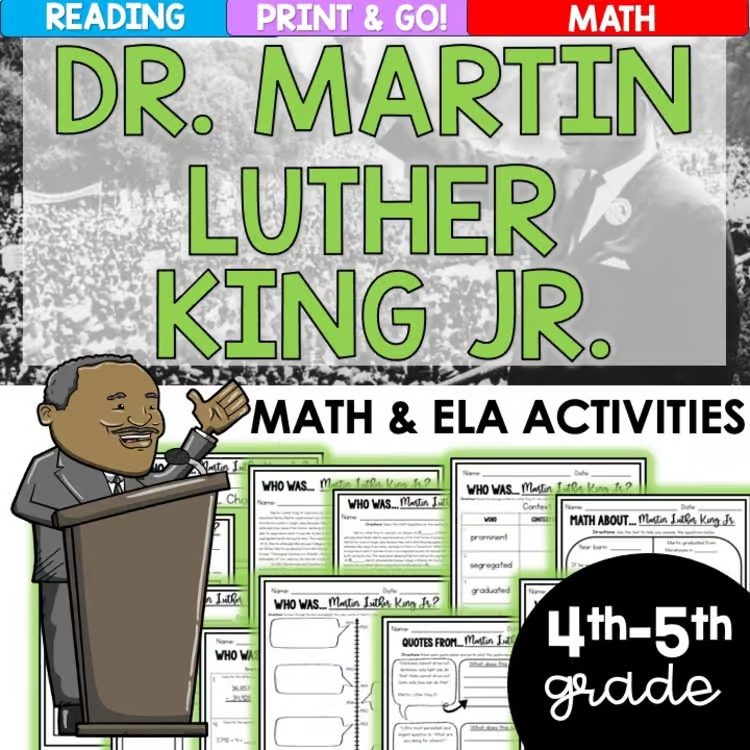 You can start with a ready-to-use resource designed to spark discussion and reflection, or extend the learning with math and ELA activities that integrate Dr. King’s story into your daily instruction.